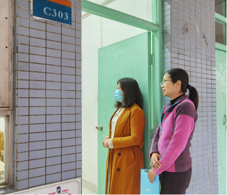 副经理梅碧琪(左)、党总支副书记马丽娟(右)查看课堂情况