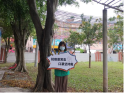 (图为曾美琳同学参加“全民戴口罩”志愿活动)