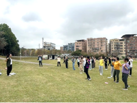 太阳成集团tyc9728师生联合党支部组织党员教师、员工在广州校区大牧场集合。活动开场由党员周心怡老师讲述飞盘运动的起源及规则,指导飞盘投掷动作,参与师生们自行分组分队伍。活动期间,师生们全神贯注地投掷,奔跑、接盘,队员间通过相互鼓励,相互配合守护好每一次飞盘传接,各组队员配合默契、团结协作,为共同目标全力拼搏。活动现场气氛热烈,共同在绿茵场上点燃激情,在运动中释放活力与快乐。