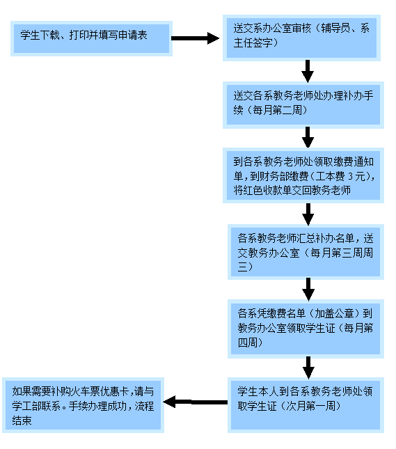 (3)员工本人把所有材料交至系办公室审批(辅导员、系主任签字),把系审批通过的材料送各系教务老师处,并领取缴费单,到财务部缴费(工本费3元),将红色收款单交回教务老师。