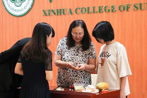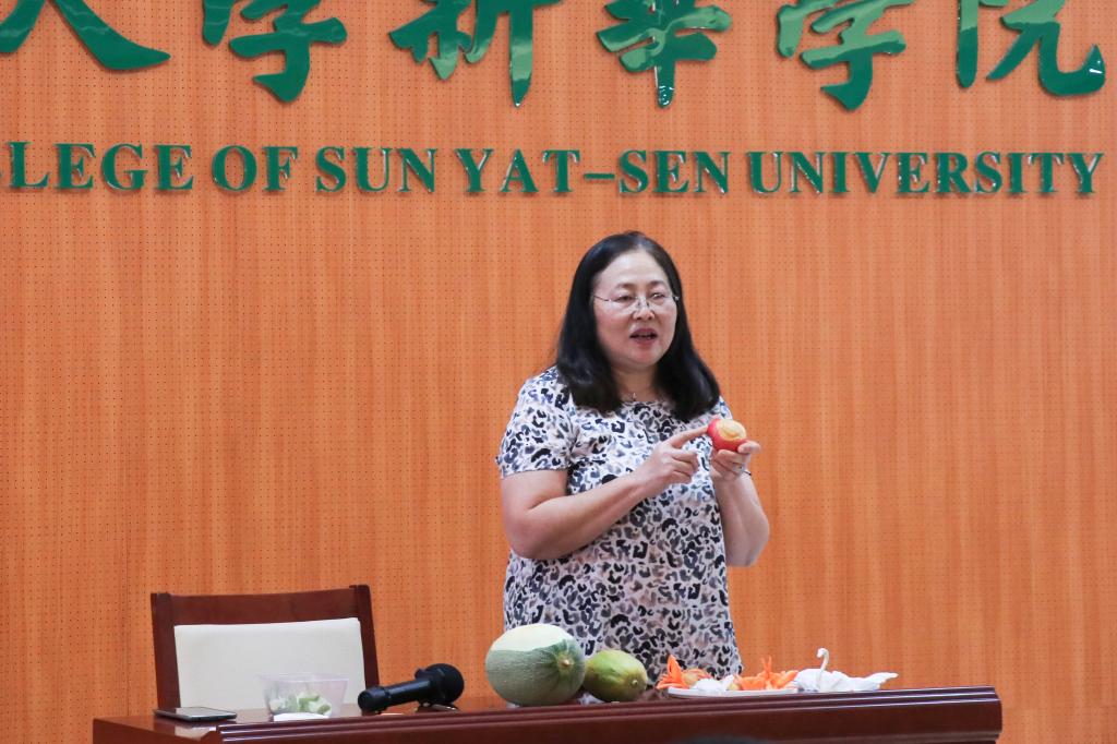 杜澄教授开场就分享了她对生活与健康的理解,告诉我们生活应该是富有情趣的,果雕艺术可以让家庭生活更健康美丽。杜澄教授简要介绍果雕的艺术起源、雕刻技巧,并展示了她的部分果雕作品。这些作品优美逼真,美轮美奂,展示了果雕艺术的魅力。