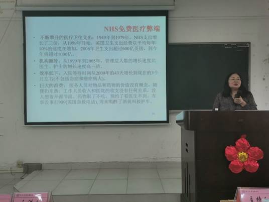 讲座伊始,副主任陈静静简要介绍并热烈欢迎杜澄教授。杜澄教授首先以中英美三国社区医疗服务的对比为角度切入。通过近期国家召开的中医药会议中的习近平总书记谈话“人民健康是民族昌盛和国家富强的重要标志”和李克强对社区养老问题的大力投入两方面,深入探讨中国对医疗的重视,肯定今后中医药发展对医疗的重要性。