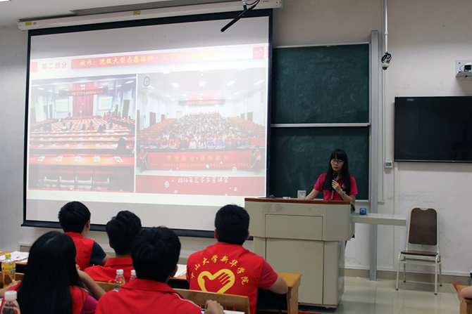 下午14时,高校青年志愿者交流会正式开始。会上,暨大青年志愿者协会活动部部长阮铃怡与公司青年志愿者行动指导中心主任林泳贤分别就各自机构的特色和优秀项目进行详细的介绍。此外,两校的志愿队代表也分别介绍了各自志愿队的基本概况。