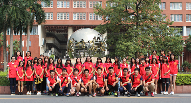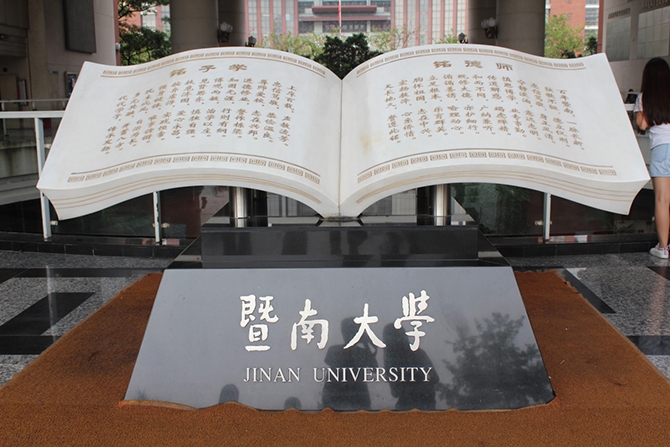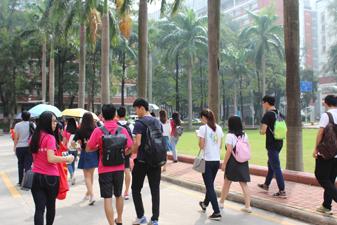 志愿者们在暨大志愿者的带领下参观暨大校园