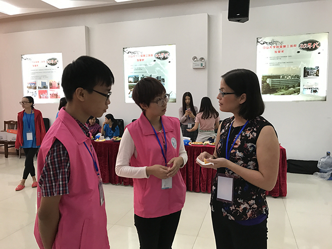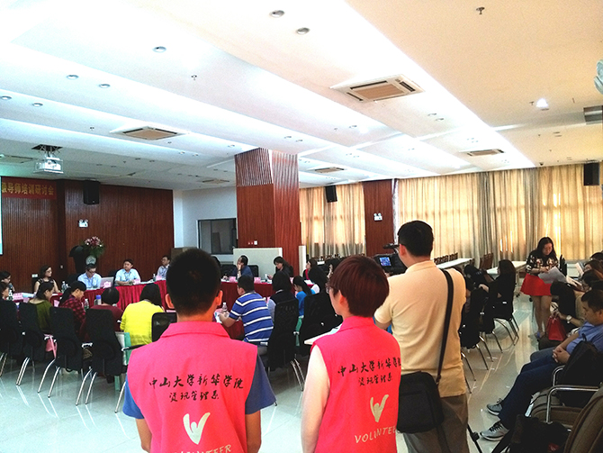 2016年11月6日-8日,由世界卫生组织、美国自闭症之声、中国妇女发展基金会主办,中国妇女发展基金会妇儿帮扶基金、中山大学附属第三医院承办的2016全球发育障碍儿童家庭康复PST项目中国国家级导师培训研讨会在中山大学附属第三医院儿童发育行为中心举行。我系凌霄志愿服务队成员张威、林宇娴等7名学子以志愿者的身份参加此次研讨会的志愿服务活动。