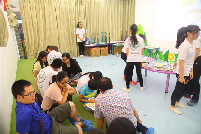 这场亲子阅读会采用的是2+1的模式,一个自闭症儿童搭配一名志愿者及一名家长,志愿者引导家庭及孩子阅读,并在阅读过程中解答家长的疑惑并为长在家中教导孩子阅读提供了方法。