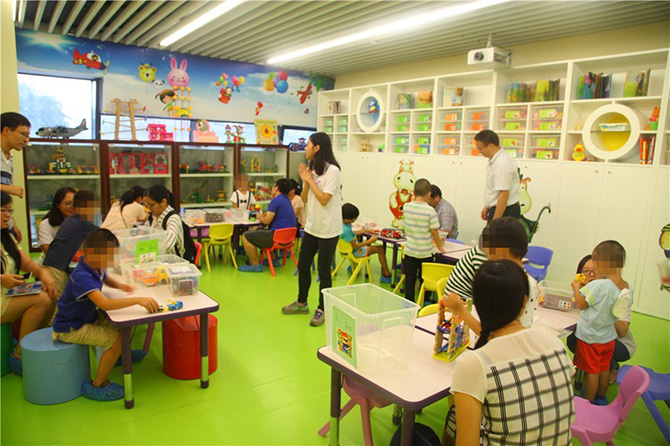 十五分钟的短暂休息后,孩子们进入了第二个活动环节,玩具馆亲子活动。在活动中,玩具馆的老师耐心地指导孩子与家长共同完成积木游戏,并提高孩子的动手能力,促进家长与孩子的亲密接触。
