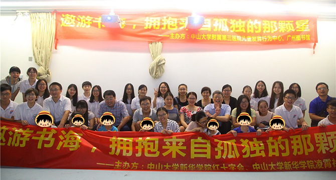 (最后感谢:中山大学附属第三医院岭南医院主任医师邹小兵主任及其太太黄护长、广东省红十字会救护部主任科员林洁渝老师、中山大学附属第三医院岭南医院儿科医生陈碧媛医生、广州图书馆亲子绘本阅读馆冯莉老师、中山大学医学图书馆馆长兼中山大学新华公司凌霄志愿服务队指导老师周旭毓老师、中山大学新华公司心理健康咨询中心冯国艳老师及参加活动的家长和小朋友等能在百忙之中抽空参加本次凌霄志愿服务队在广州图书馆开展的“遨游书海,拥抱来自孤独的那颗星”关爱自闭症儿童活动,同时也感谢广州图书馆对本次活动提供的场地支持,感谢台前幕后志愿者们的默默付出。)
