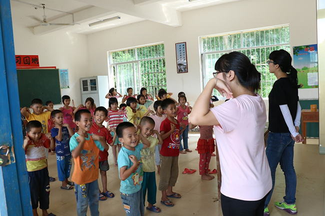 下午让我感到非常高兴的一件事是排练《隐形的翅膀》的手语,同学们都非常愿意积极配合我们的教学,虽然一开始的时候部分小男生有点顽皮,到处跑来跑去,但是经过一番努力之后,最后他们还是被我们成功收服,乖乖听话,而且他们还非常聪明,能够较快地领悟,十分期待他们在最后一天汇演时的表现。