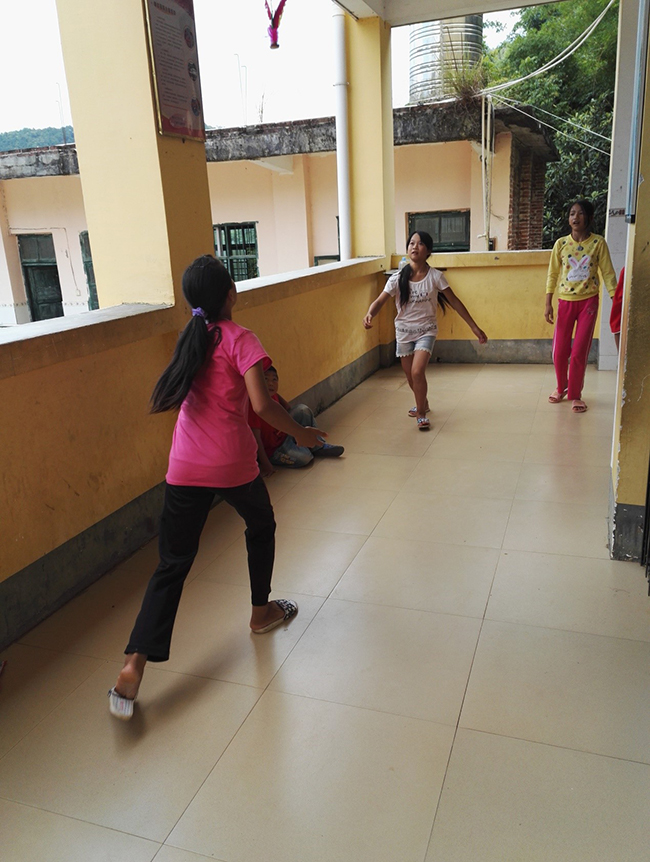 吃完饭,我们第一次在中午来到了办公室。因为小朋友们有很多中午是不回家留在公司,或者吃完饭后就回到公司的,所以这个时候他们都会在教学楼一楼或者二楼活动。而我们就和小朋友们一起踢毽子。我们不是支教组的,平时待的最多的地方就是食堂,和小朋友们接触得不多,说起来,这还是我们第一次和他们这么亲密的玩耍。但他们并没有因为很少见到我们而不敢靠近我们,反而还很兴奋地拽着我们的手让我们陪他们一起踢毽子。其中有几个小女生很想参与进来,可又因为太害羞只好在旁边看着我们。尽管小孩子们都不会踢毽子,但他们很开心地让我们教了很久,最后还是因为不想让他们大汗淋漓地去上课,硬让他们去休息才肯停下的。到了上课时间,他们才恋恋不舍地一边跟我们说拜拜一边跟着支教组的老师回到教室上课。