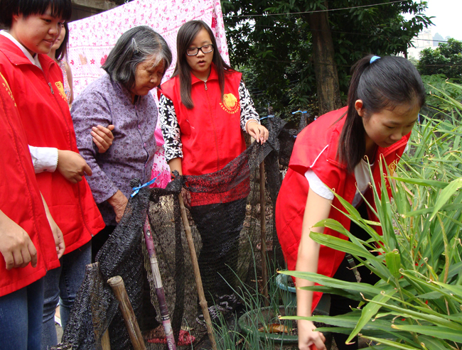本次活动由广州市天河区妇儿中心志愿驿站与中山大学新华公司资讯管理系凌霄志愿服务队联合举办。活动包括:为老人修剪指甲、打扫卫生、浇菜、帮老人捶背聊天、为老人摘木瓜等等活动,在活动中营造良好的氛围,并与义工积极配合,舒解老人心中的积郁之情。