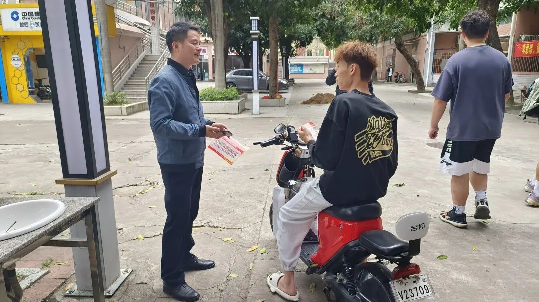 志愿者与宿管交流电动车使用安全情况,保证安全措施落实到位。通过交流,志愿者了解到生活园电动车使用的情况,有针对性地进行安全宣传,宿管则可以充分发挥自身优势,加强对员工使用电动车情况的监管,确保宿舍区域内的安全,从而有效地加强安全规范,减少安全隐患。双方共同合作,有效地加强了电动车安全的宣传力度。