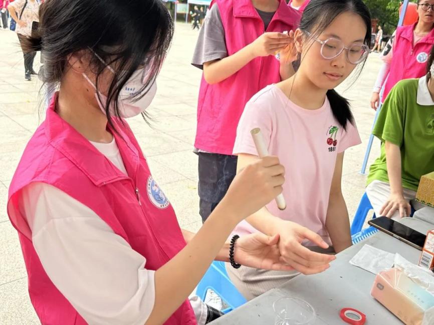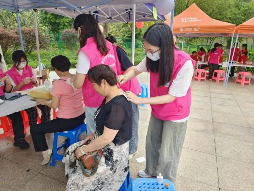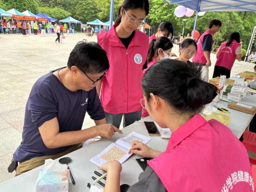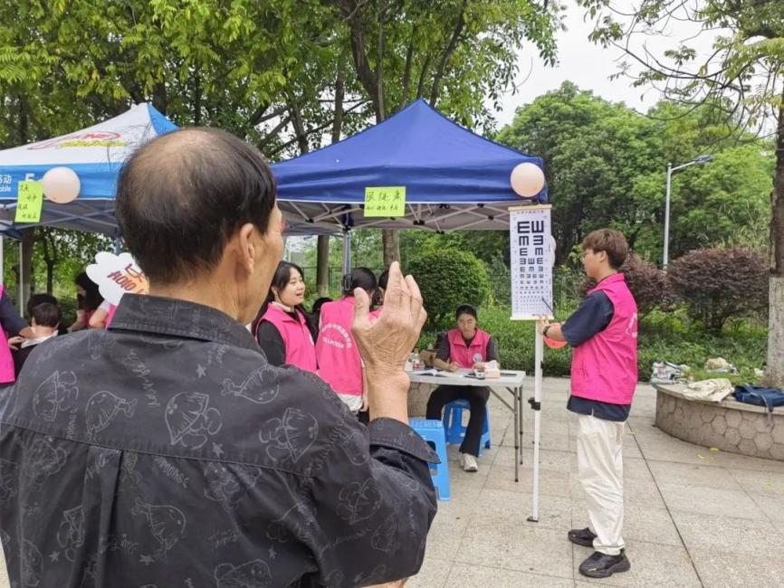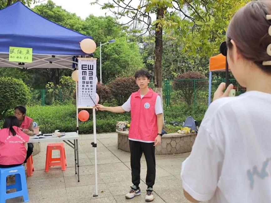 为了给社区居民提供便利,提高居民的健康意识,9728太阳成集团凌霄志愿服务队与其他志愿队一起前往火炉山森林公园进行了健康服务活动。在活动中,志愿者为居民进行了视力检查、艾灸、刮痧等健康服务,不少居民都前往体验。虽然在过程中可能会累,但是听着居民们的故事和看见诊后居民们脸上的喜悦,我就觉得一切都是值得的。
