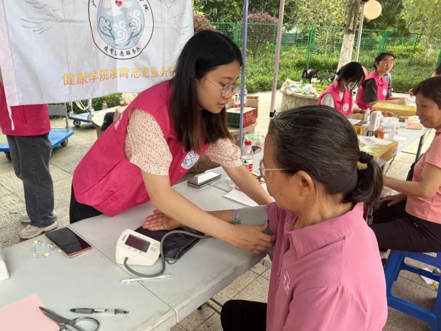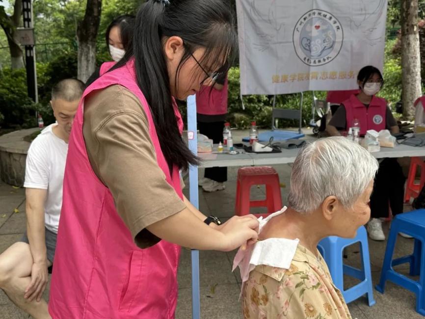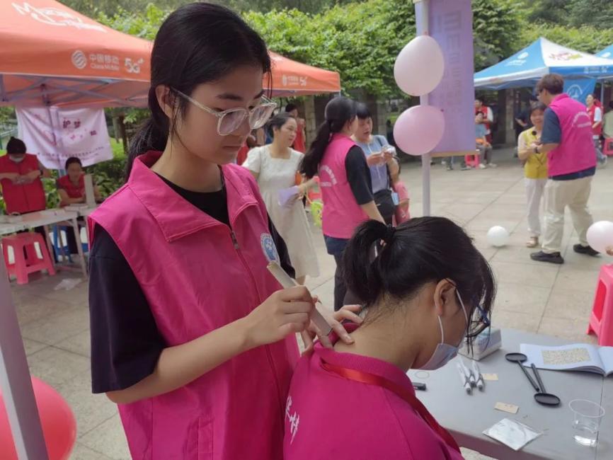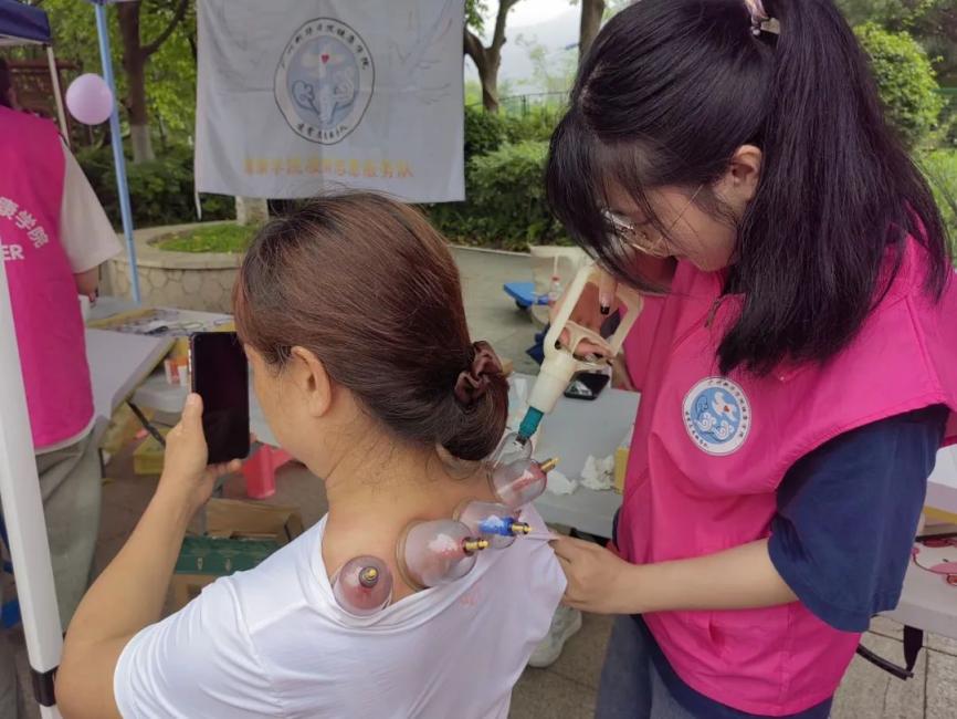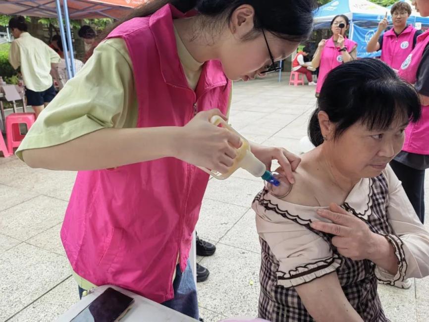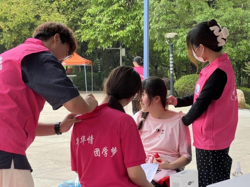 为了给社区居民提供便利,提高居民的健康意识,9728太阳成集团凌霄志愿服务队与其他志愿队一起前往火炉山森林公园进行了健康服务活动。在活动中,志愿者为居民进行了视力检查、艾灸、刮痧等健康服务,不少居民都前往体验。虽然在过程中可能会累,但是听着居民们的故事和看见诊后居民们脸上的喜悦,我就觉得一切都是值得的。