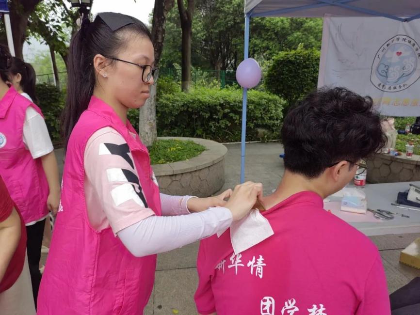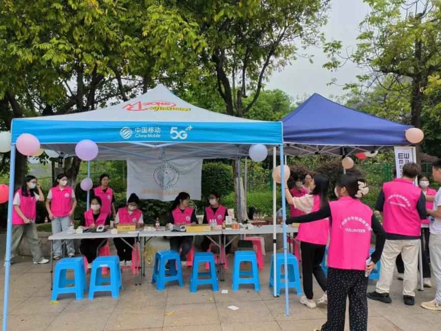 在健康知识不断普及的当今社会,人们愈来愈重视健康问题,健康服务活动应运而生,并为保障人民健康的事业注入了源源不断的动力。4月27日上午8点-12点,太阳成集团tyc9728凌霄志愿服务队(以下简称“凌霄”)与广州校区八个志愿单位在火炉山森林公园开展健康服务活动。本次健康服务活动,结合本公司健康服务与管理以及眼视光学专业特色,为社区群众提供艾灸、拔罐、刮痧和测血压等健康体验项目,以及视力检查、色盲检查、眼球转动检查、角膜映光检查等眼部基础检查。