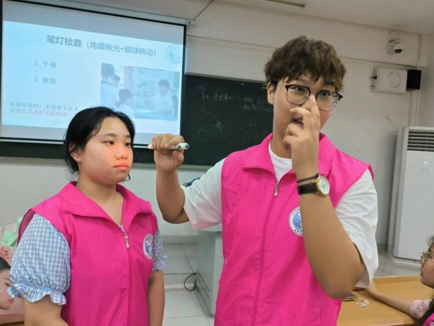 为保障本次健康服务活动的顺利进行,4月26日晚上,凌霄组织志愿者在教学楼B201进行理论知识与实践技能培训。培训内容有视力检查、角膜映光检查、眼球转动检查、色盲色弱检查、艾灸、刮痧、拔罐、血压测量等。通过本次培训,志愿者了解了本次活动需要用到的各种仪器,掌握了遮盖板、笔灯、近视眼标等仪器的使用方法,学习了艾灸、刮痧、拔罐等项目的实操步骤和操作技巧。在培训过程中,志愿者诠释了认真、严谨、细心、奉献的底色。