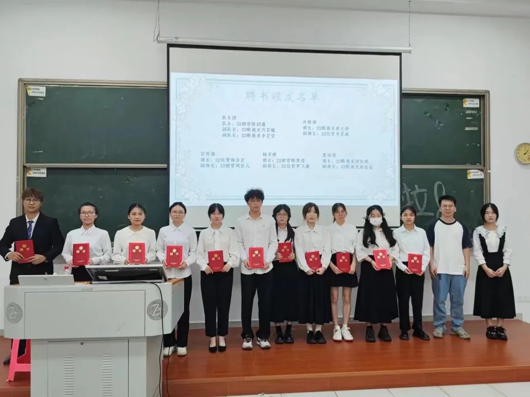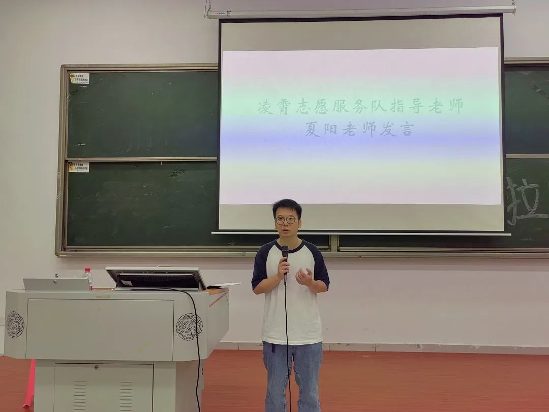 指导老师夏阳为22级凌霄志愿服务队颁发聘书: