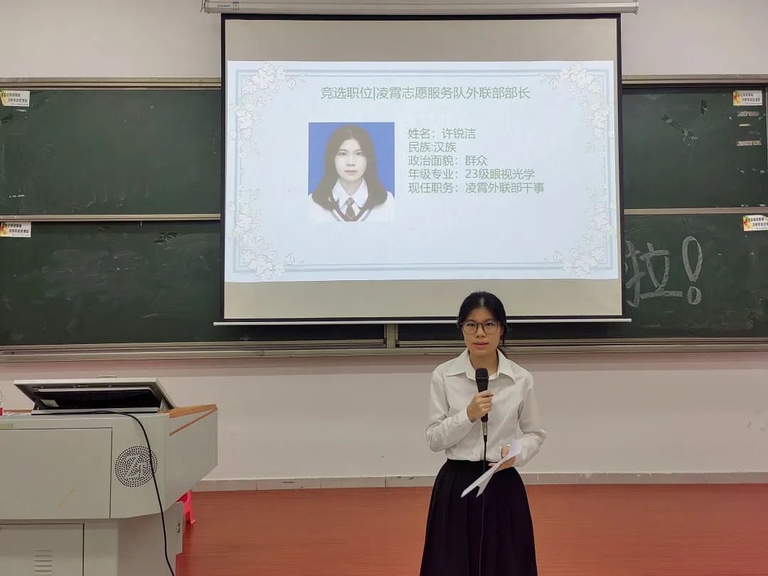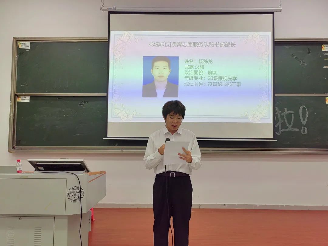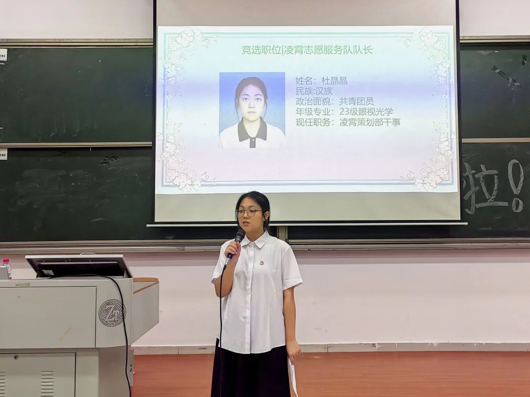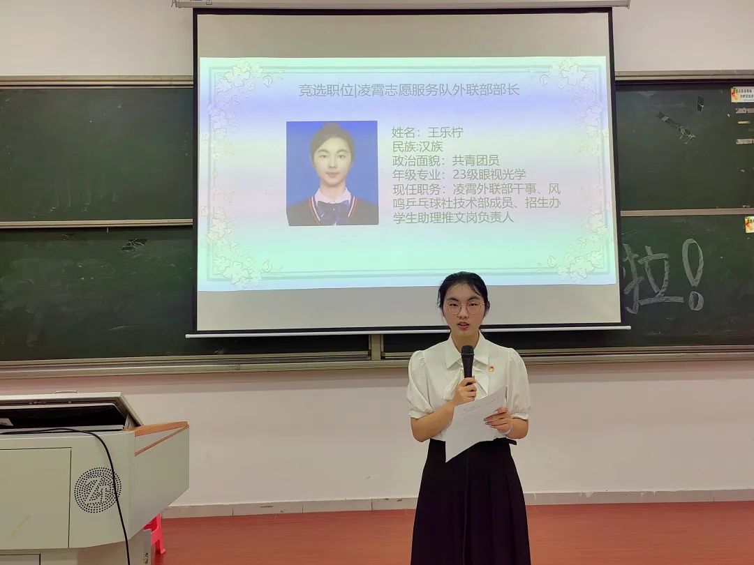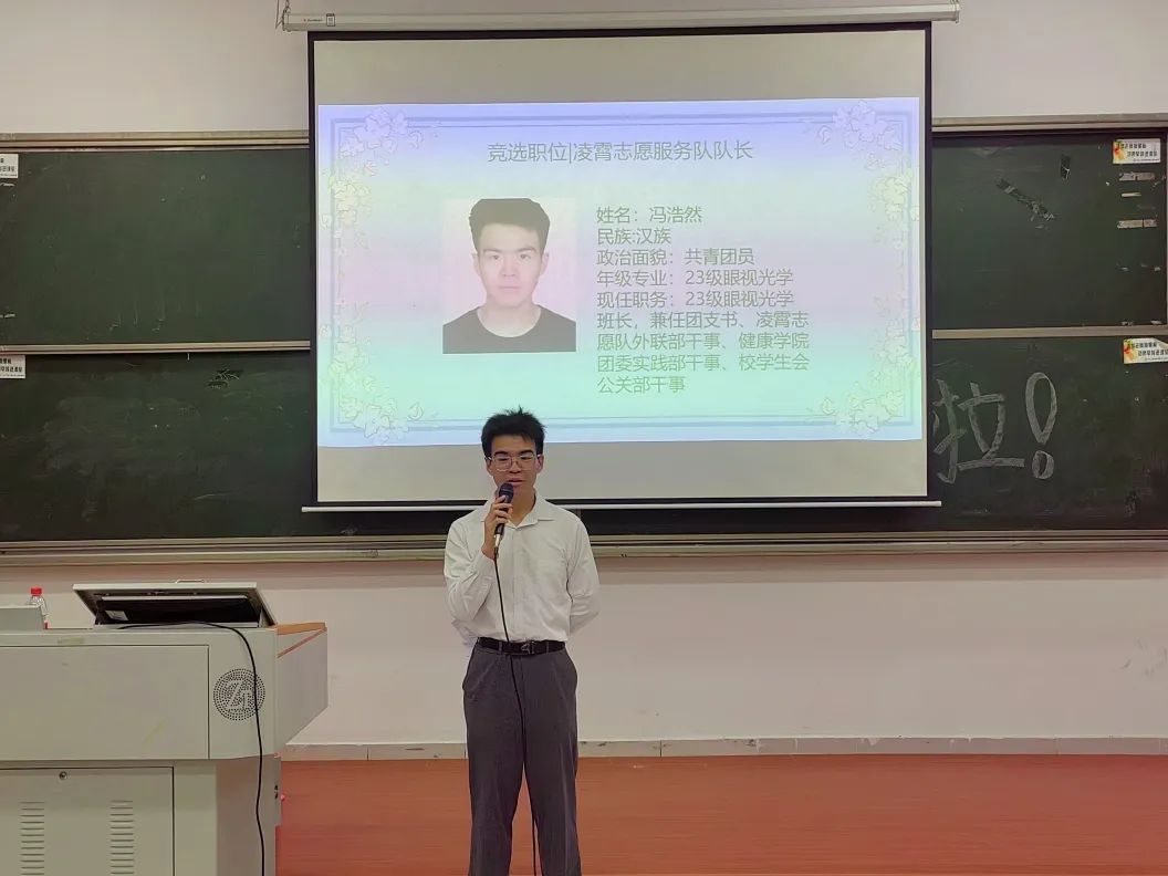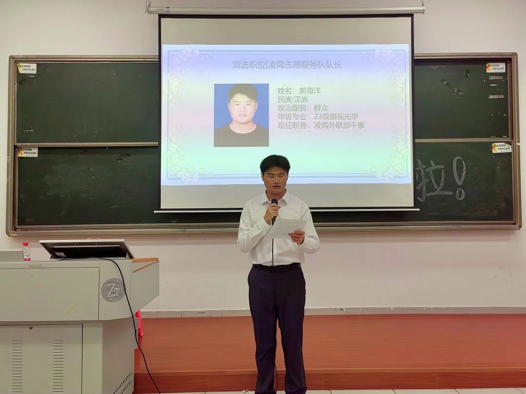 出席本次大会的有凌霄志愿服务队的指导老师夏阳老师、队长陈润薇、22级管理层、23级管理层候选人及主持人23级眼视光李扬同学。