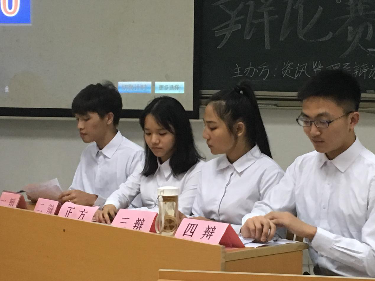 为增强我系员工思辨与表达能力,提高大一学子语言表达能力,资讯管理系“资讯杯”辩论赛于4月5日晚上七点在D304教室正式拉开帷幕。参加此次辩论赛的嘉宾及评委有中山大学新华公司员工会学术部部长叶泽森,前学术部部长吴晓,资讯管理系辩论队队长林淑珍,资讯管理系杜月平,资讯管理系辩论队周洁玲等。此外前来观战的还有几十余名员工生代表。