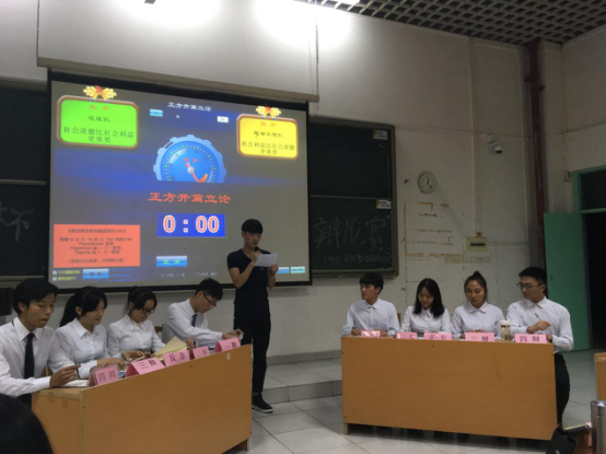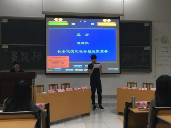 在选手们自信简洁的自我介绍后,比赛逐渐开始激烈起来。比赛双方围绕“社会道德与社会利益哪个更重要”这一辩题展开了激烈的对决。正方持社会道德比社会利益更重要的观点,而反方持社会利益比社会道德更重要的观点,双方辩手用犀利的言语论证着自己的观点,坚守阵地,展现出了自己的水平。