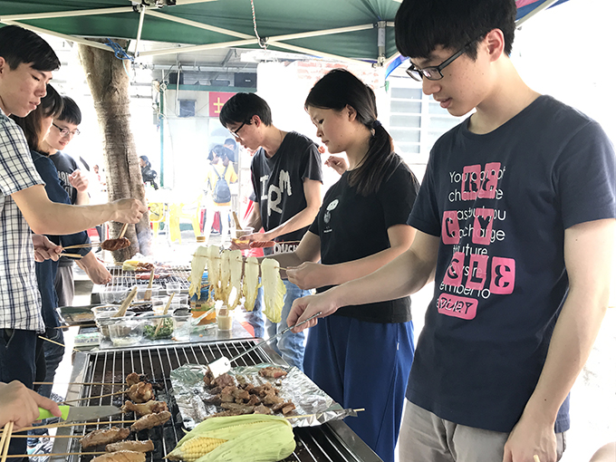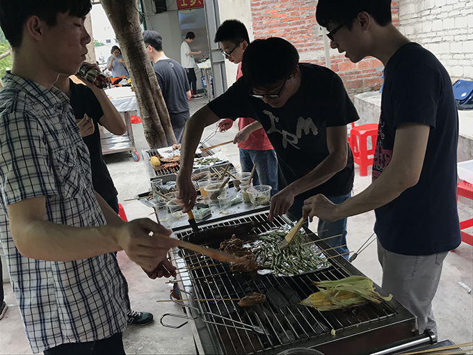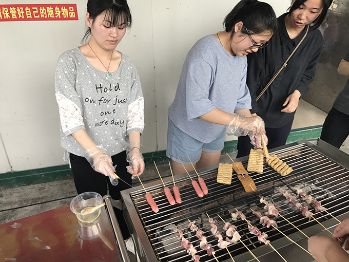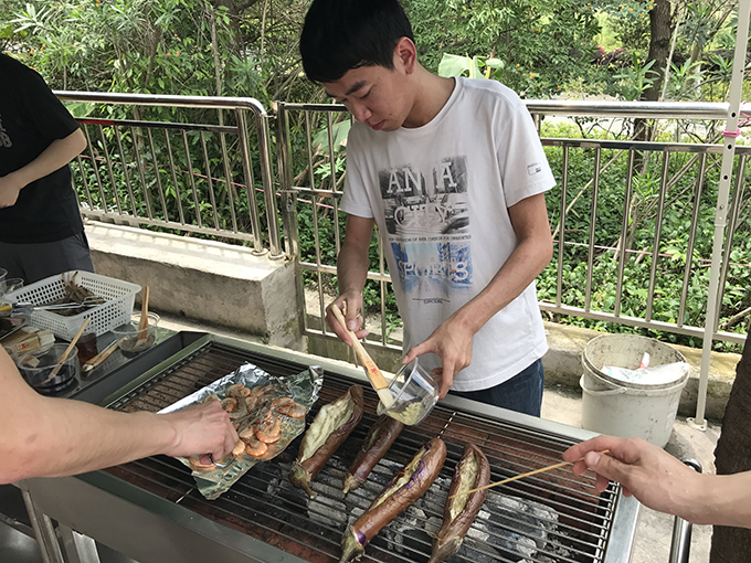 终于可以大显身手了,小伙伴们纷纷挑选自己喜欢的食材放上烤架,当然,也没忘记了为自己小组的同伴们带上一份。