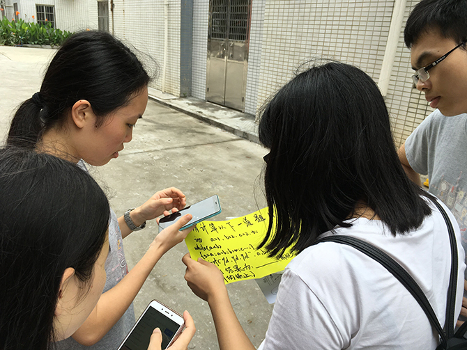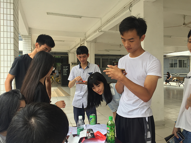 本次活动是以4人为一队的团体赛为主,内容涉及定点寻宝,手工捏图,寻找缺失的另一半以及破解程序题,如完成所有任务的队伍,最早回到起点,则为胜利。在活动中同学大展身手,一改往日“宅男宅女”形象,释放活力与青春,场面十分热闹、激烈。