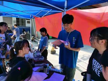 同学们在摊位现场解答咨询