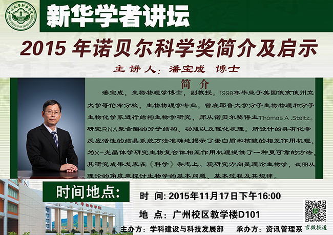 讲座题目:2015年诺贝尔科学奖简介及启示