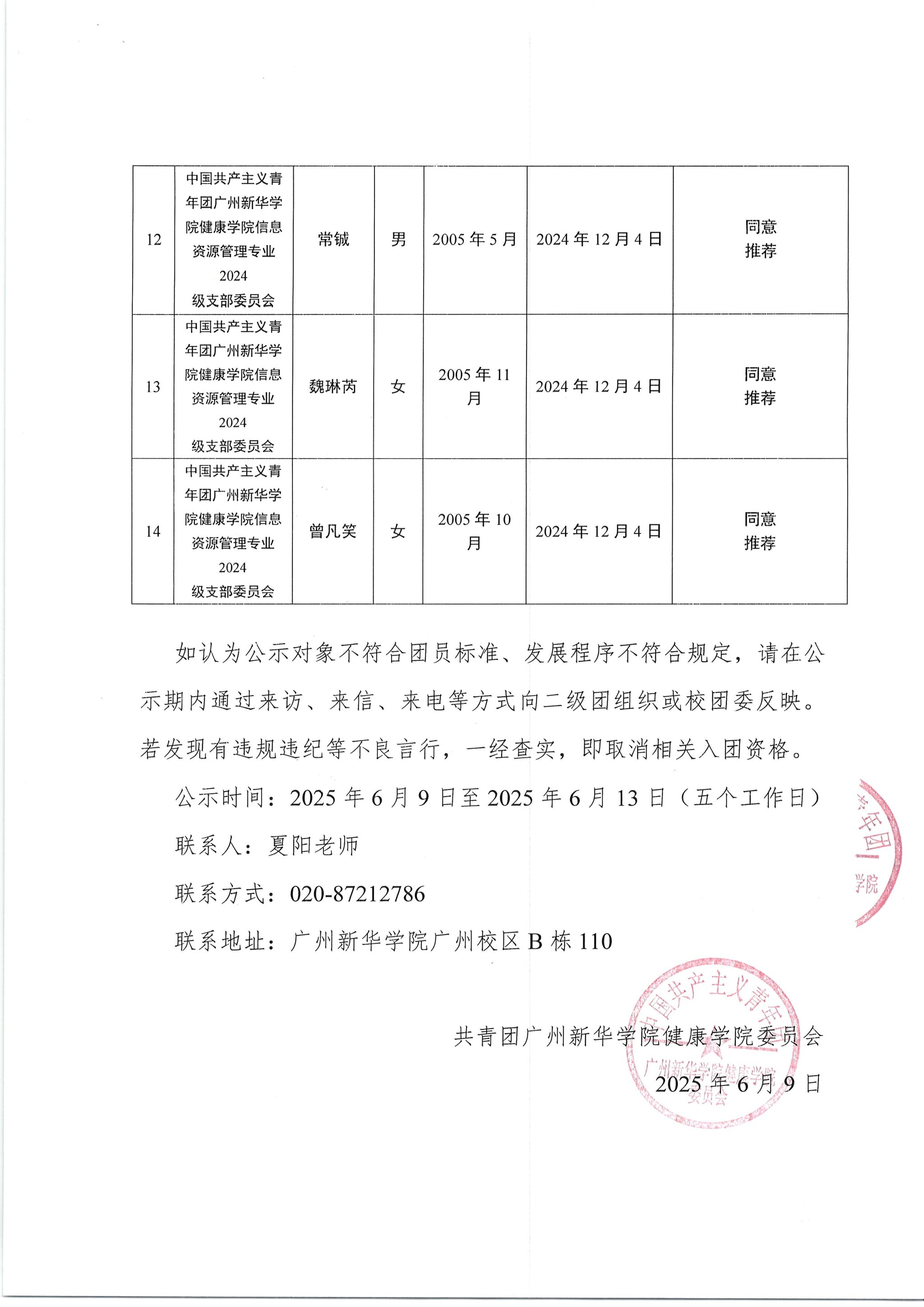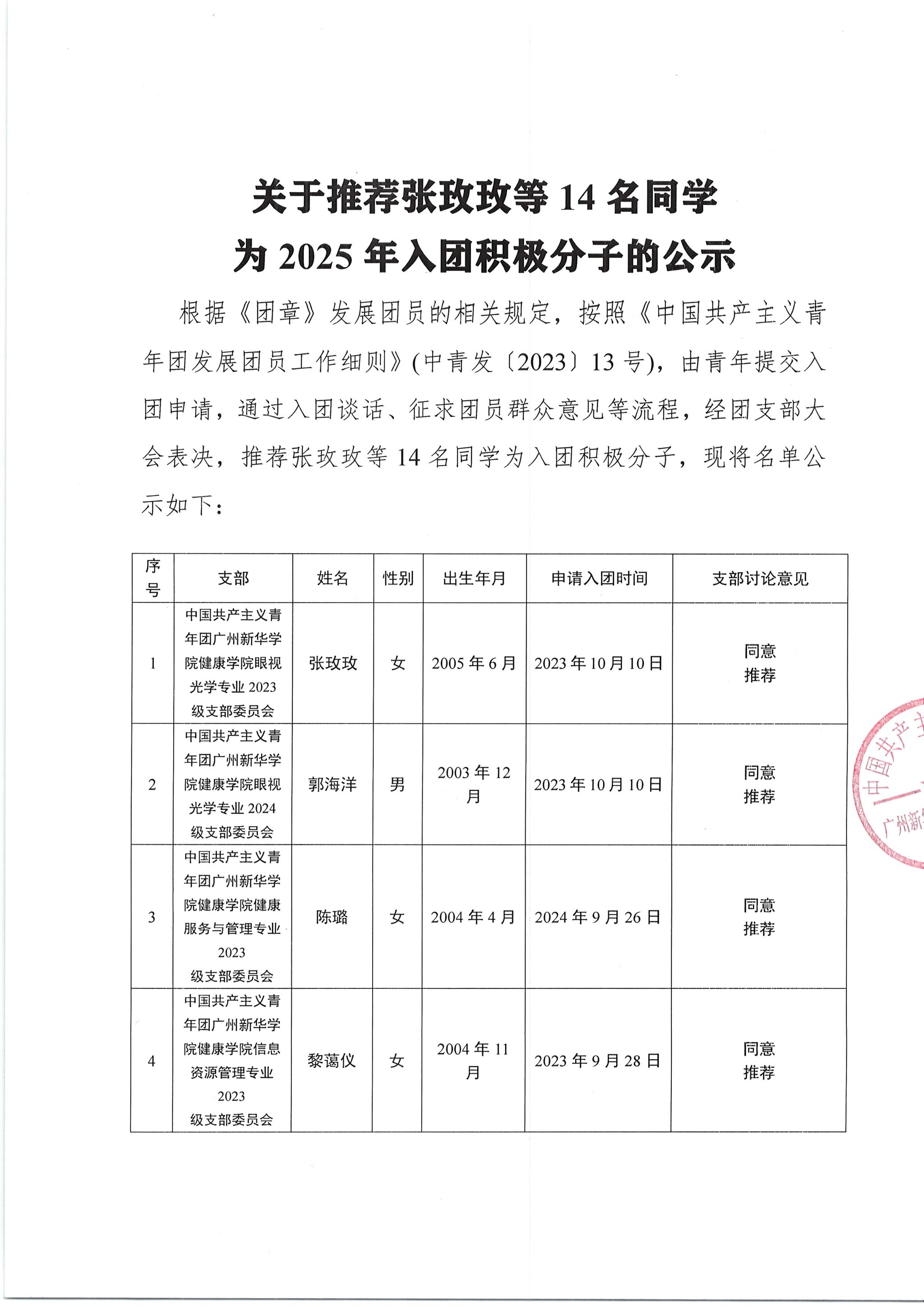 关于推荐张玫玫等14名同学为2025年入团积极分子的公示